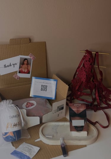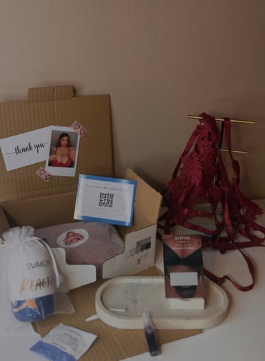Tu reçois dans la box une de mes lingeries déjà portées qui ne me vas plus. Je l'ai déjà portée pour du contenu onlyfans , un live , un média privé, ou peut-être dans une soirée perso..