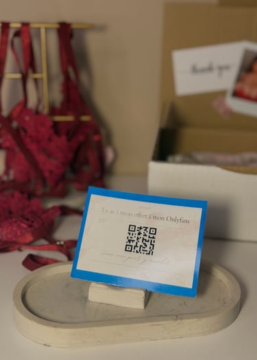 J'ai aussi voulu te glisser un petit cadeau en te mettant une petite carte comprenant un QR code ou tu auras accès a 1mois gratuit sur mon onlyfans.